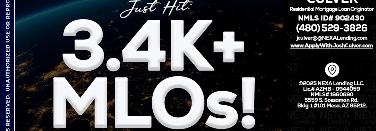 Hi, my name is Joshua Culver. I’m a Loan Officer with NEXA Mortgage LLC., offering personalized mortgage solutions, fast customized quotes, great rates and service with integrity.