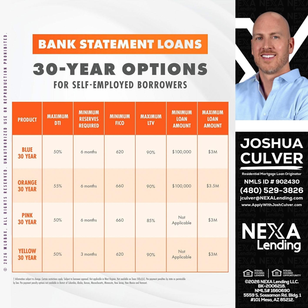 Hi, my name is Joshua Culver. I’m a Loan Officer with NEXA Lending LLC., offering personalized mortgage solutions, fast customized quotes, great rates and service with integrity.
