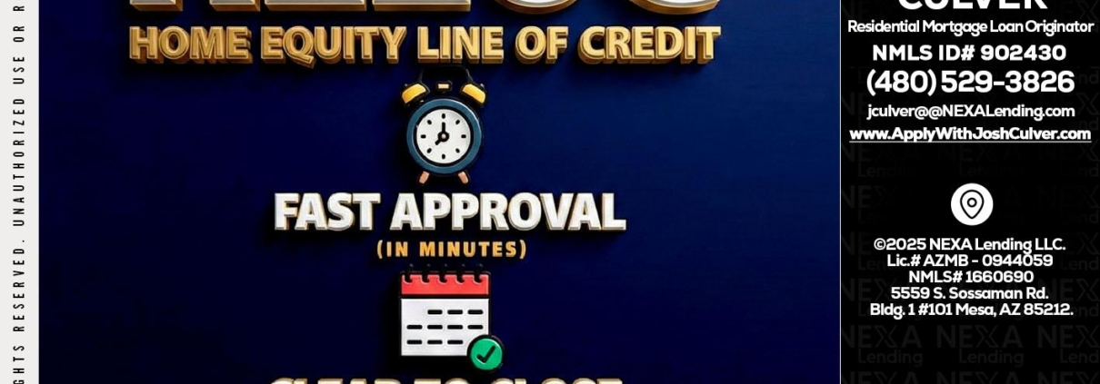 Hi, my name is Joshua Culver. I’m a Loan Officer with NEXA Lending LLC., offering personalized mortgage solutions, fast customized quotes, great rates and service with integrity.