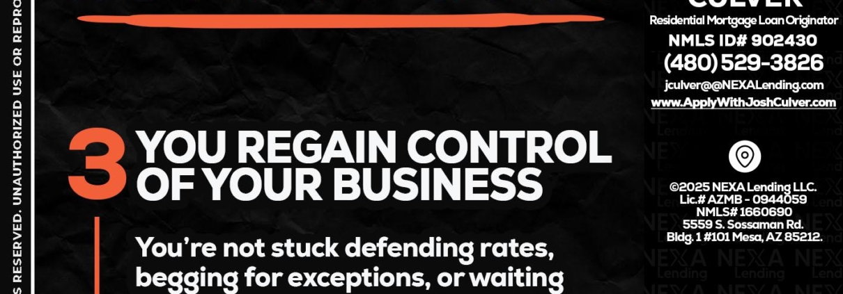 Hi, my name is Joshua Culver. I’m a Loan Officer with NEXA Lending LLC., offering personalized mortgage solutions, fast customized quotes, great rates and service with integrity.