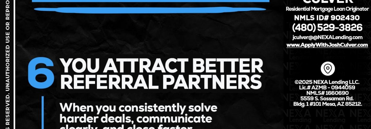 Hi, my name is Joshua Culver. I’m a Loan Officer with NEXA Lending LLC., offering personalized mortgage solutions, fast customized quotes, great rates and service with integrity.