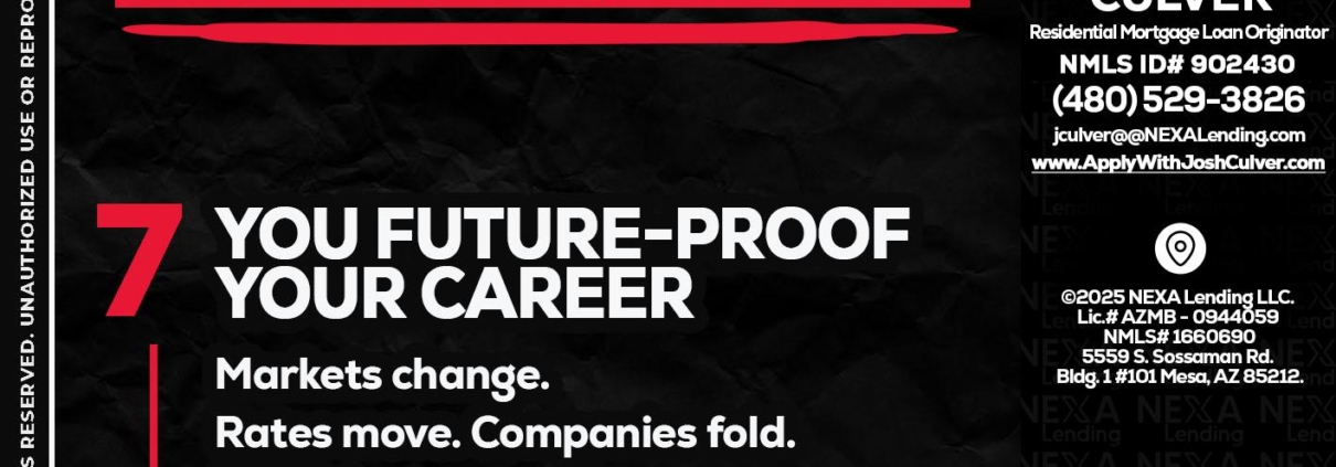 Hi, my name is Joshua Culver. I’m a Loan Officer with NEXA Lending LLC., offering personalized mortgage solutions, fast customized quotes, great rates and service with integrity.