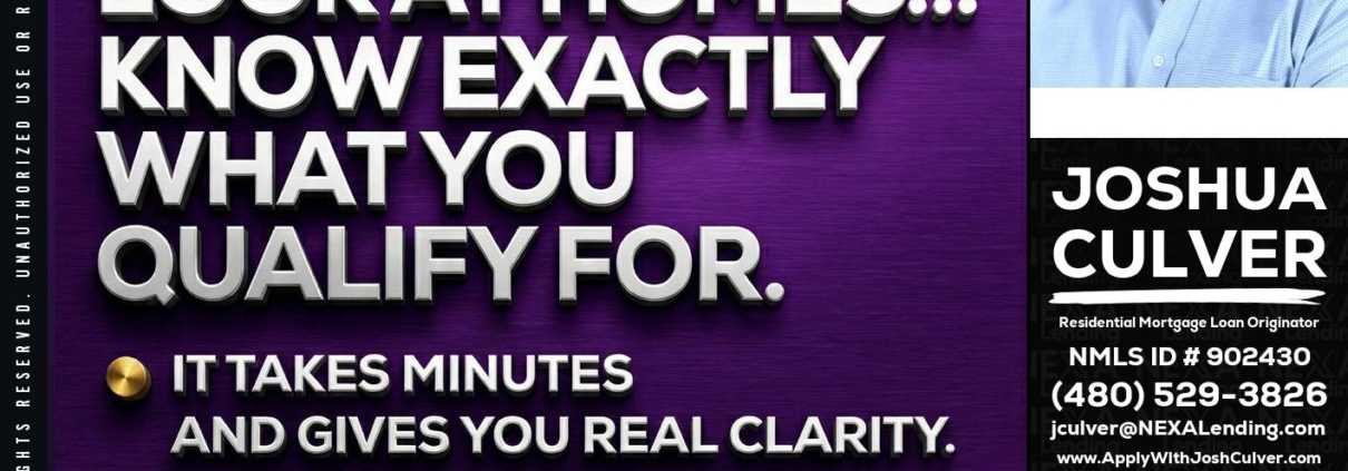 Hi, my name is Joshua Culver. I’m a Loan Officer with NEXA Lending LLC., offering personalized mortgage solutions, fast customized quotes, great rates and service with integrity.
