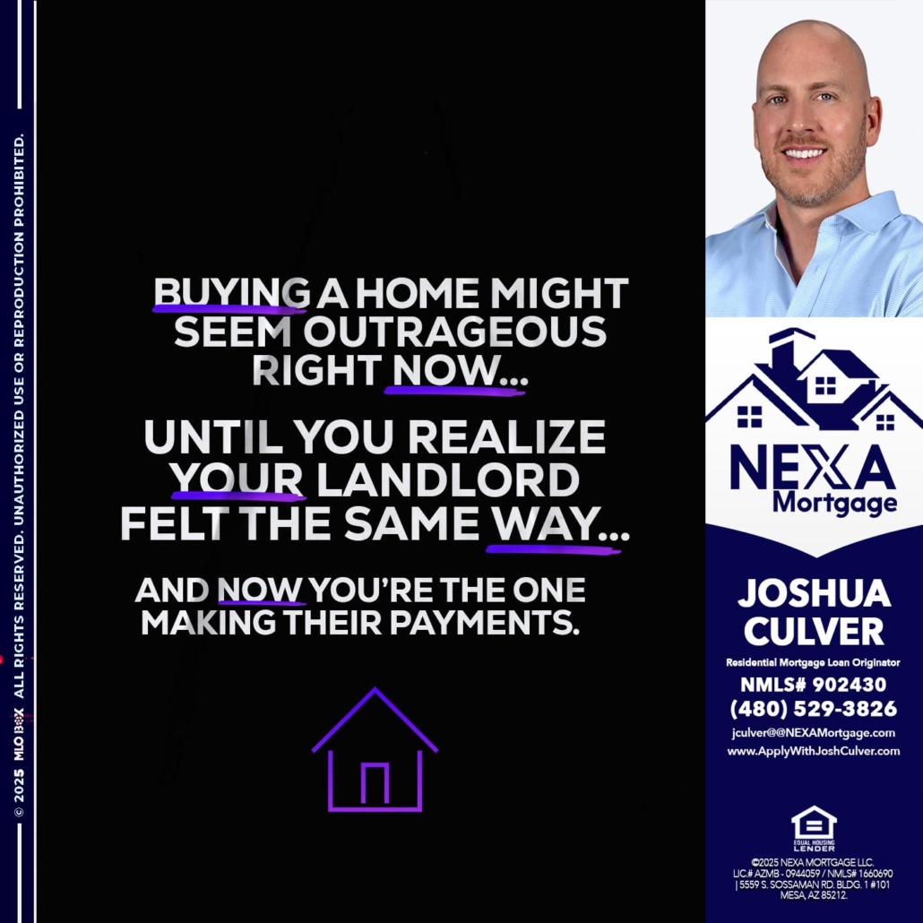 BUYING A HOME - Joshua Culver -Residential Mortgage Loan Originator & RecruiterHi, my name is Joshua Culver. I’m a Loan Officer with NEXA Mortgage LLC., offering personalized mortgage solutions, fast customized quotes, great rates and service with integrity.