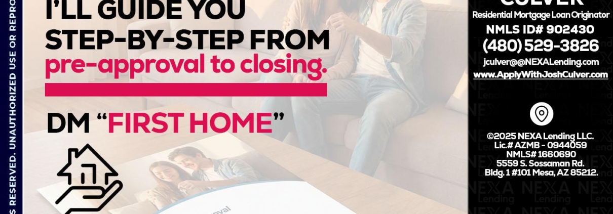 Hi, my name is Joshua Culver. I’m a Loan Officer with NEXA Lending LLC., offering personalized mortgage solutions, fast customized quotes, great rates and service with integrity.