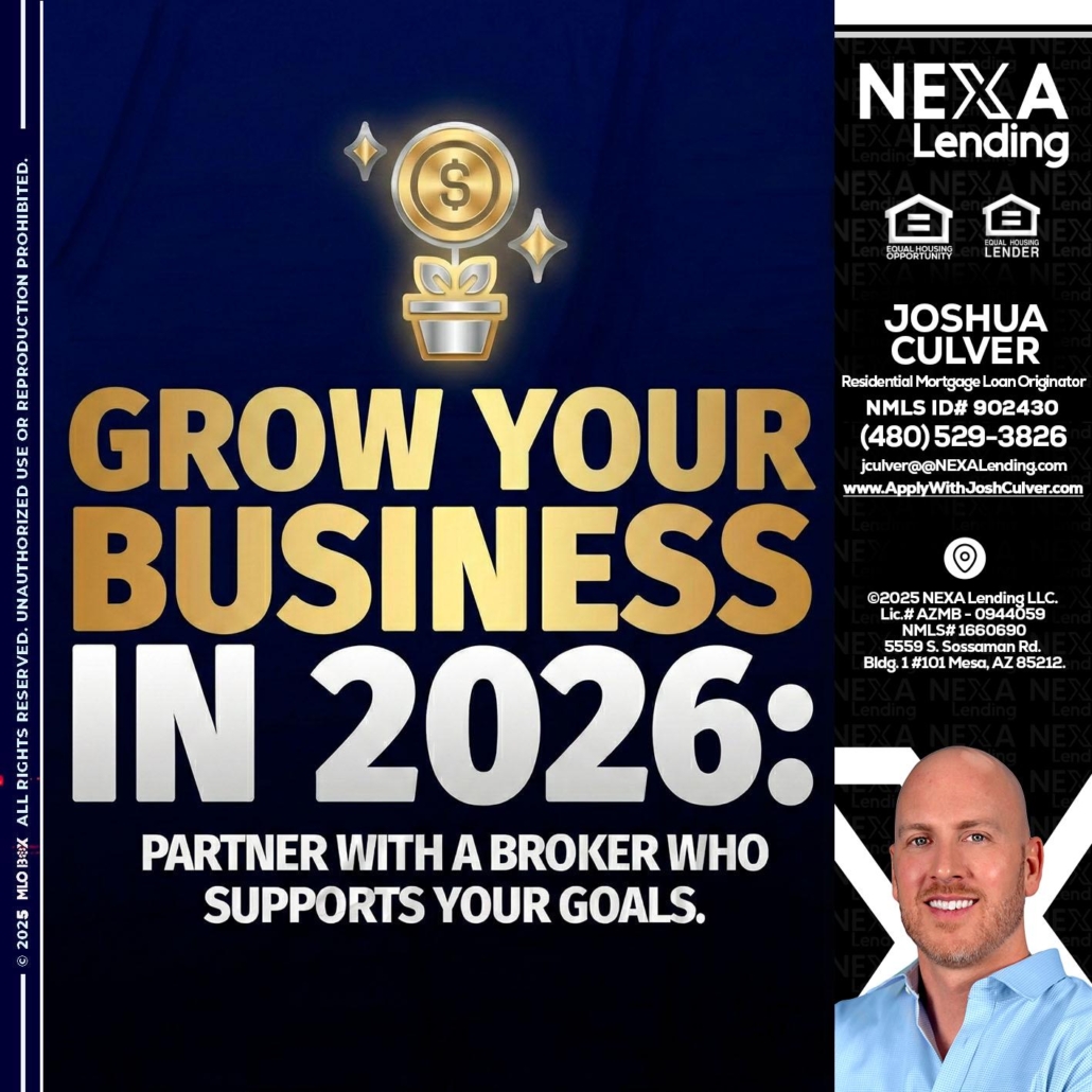 Hi, my name is Joshua Culver. I’m a Loan Officer with NEXA Lending LLC., offering personalized mortgage solutions, fast customized quotes, great rates and service with integrity.