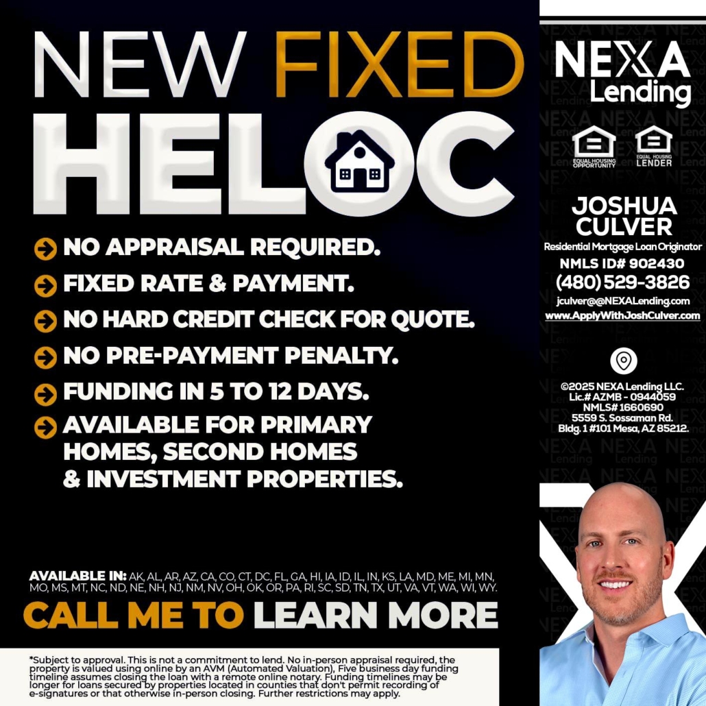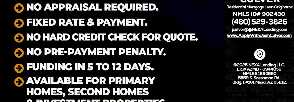 Hi, my name is Joshua Culver. I’m a Loan Officer with NEXA Lending LLC., offering personalized mortgage solutions, fast customized quotes, great rates and service with integrity.