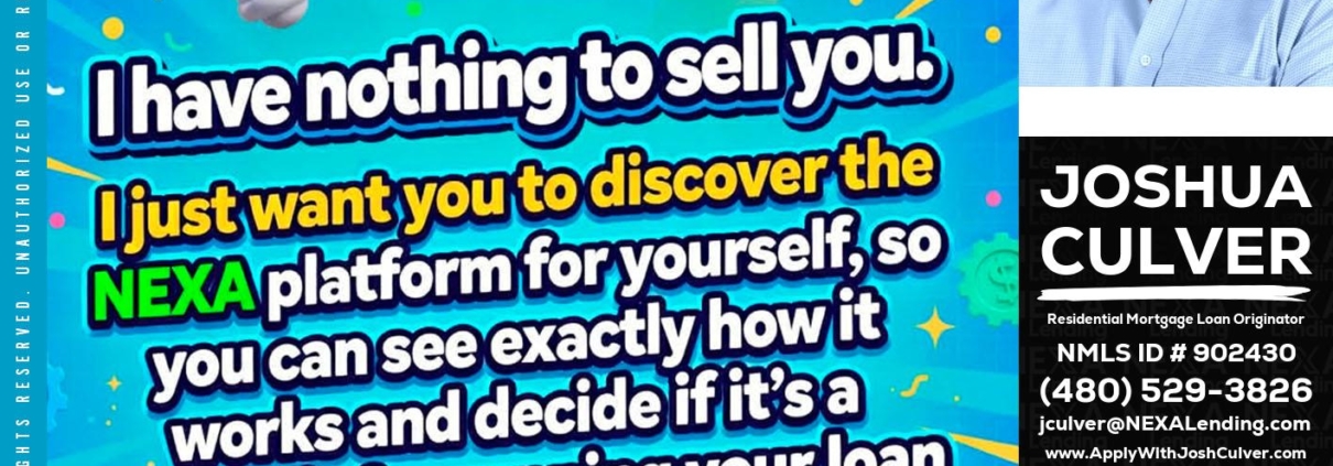 Hi, my name is Joshua Culver. I’m a Loan Officer with NEXA Lending LLC., offering personalized mortgage solutions, fast customized quotes, great rates and service with integrity.