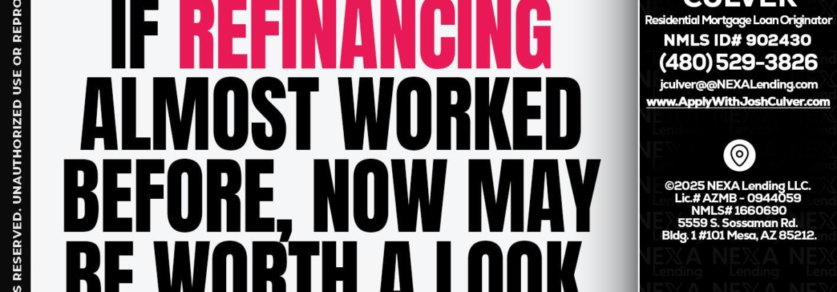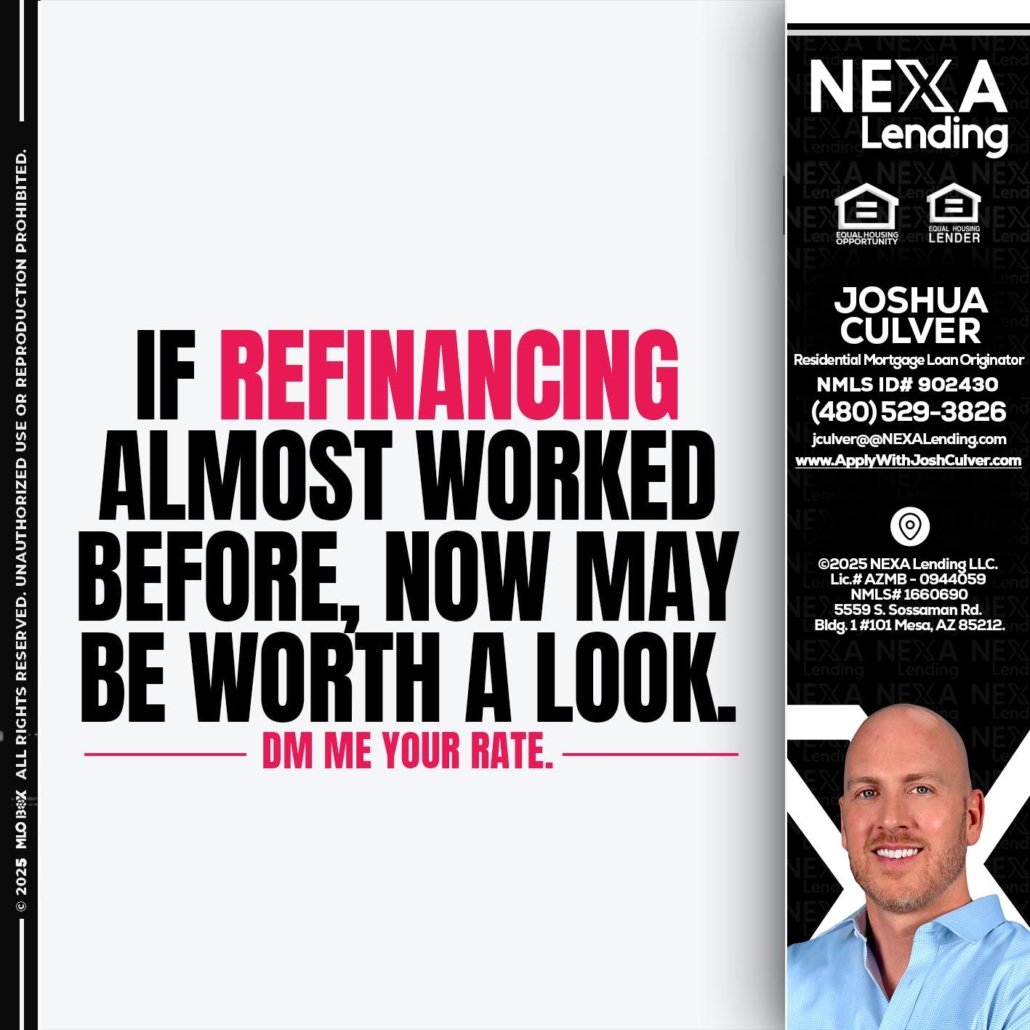 Hi, my name is Joshua Culver. I’m a Loan Officer with NEXA Lending LLC., offering personalized mortgage solutions, fast customized quotes, great rates and service with integrity.