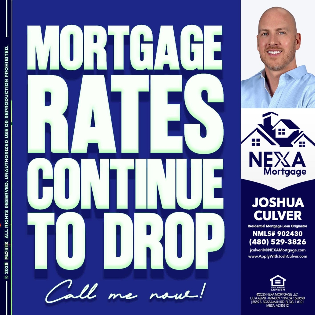 Hi, my name is Joshua Culver. I’m a Loan Officer with NEXA Mortgage LLC., offering personalized mortgage solutions, fast customized quotes, great rates and service with integrity.
