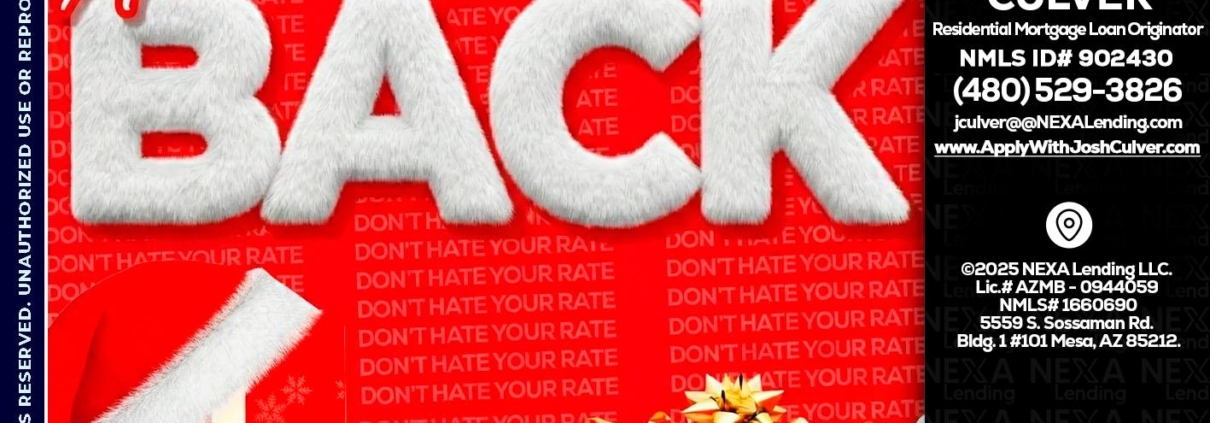 refis are back - Joshua Culver -Residential Mortgage Loan Originator & RecruiterHi, my name is Joshua Culver. I’m a Loan Officer with NEXA Lending LLC., offering personalized mortgage solutions, fast customized quotes, great rates and service with integrity.