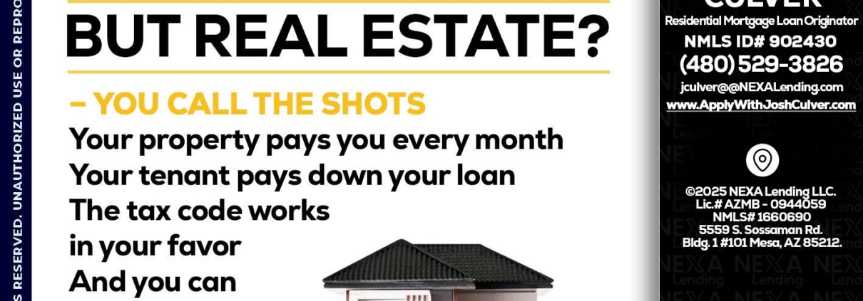Hi, my name is Joshua Culver. I’m a Loan Officer with NEXA Mortgage LLC., offering personalized mortgage solutions, fast customized quotes, great rates and service with integrity.