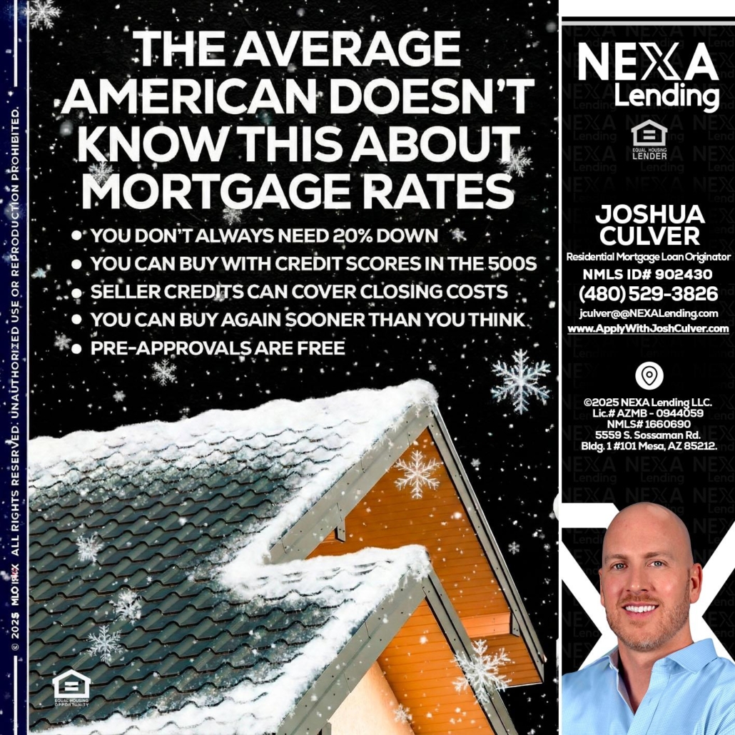 THE AVERAGE - Joshua Culver -Residential Mortgage Loan Originator & RecruiterHi, my name is Joshua Culver. I’m a Loan Officer with NEXA Lending LLC., offering personalized mortgage solutions, fast customized quotes, great rates and service with integrity.