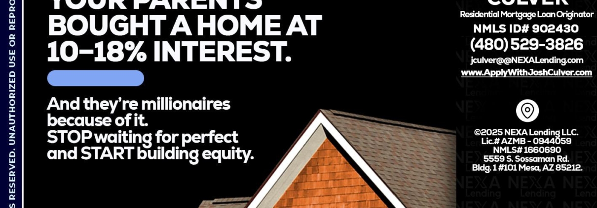 Hi, my name is Joshua Culver. I’m a Loan Officer with NEXA Mortgage LLC., offering personalized mortgage solutions, fast customized quotes, great rates and service with integrity.